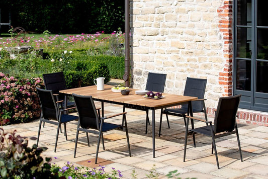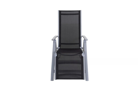 VILLANA Multipositionssessel, silber/schwarz, Alu/Textilene, 64 x 58 x 110 cm, FSC Akazienholz Armlehnen