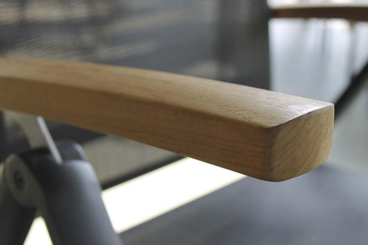 OUTFLEXX Multipositionssessel, grau, Edelstahl/Textilene, 68x60x108cm, FSC®-Teakholz, verstellbar