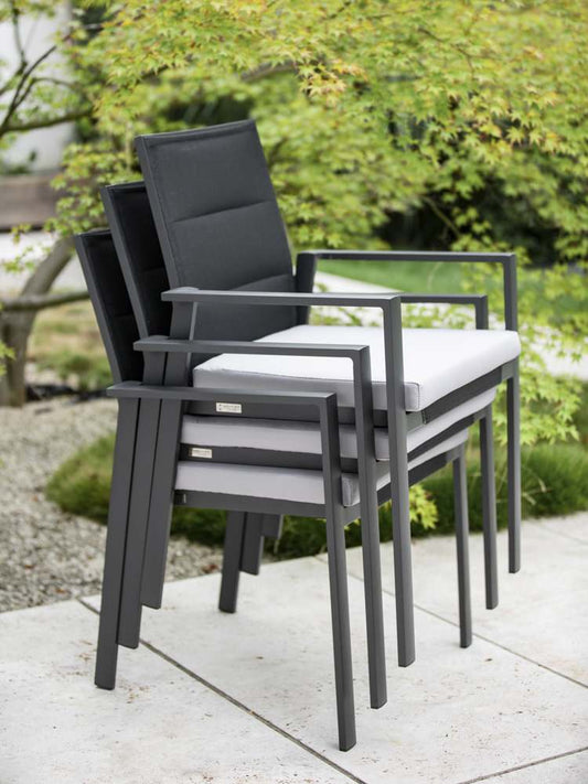 Diamond Garden Valencia Stapelstuhl - Edelstahl-Dunkelgrau/Sunproof Sling-Schwarz/Armlehne Alu