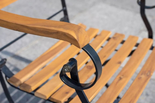 OUTFLEXX Klappstuhl, schwarz/natur, Stahl/FSC-Akazienholz, 54x56,5x87 cm, klappbar, mit Armlehnen, pulverbeschichtet
