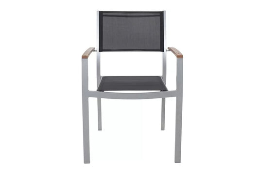 VILLANA Stapelsessel, silber/schwarz, Alu/Textilene, 57 x 56 x 84 cm, FSC Akazienholz Armlehnen