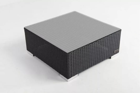 OUTFLEXX Beistelltisch/Hocker, schwarz, Polyrattan, inkl. Glasplatte und Polster