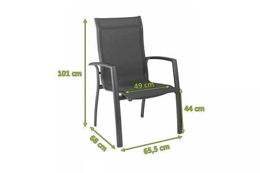 OUTFLEXX Stapelsessel, anthrazit matt/schwarz, Alu/Textilene, 60x69x93,5cm