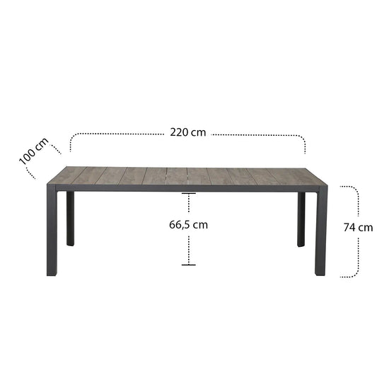 OUTFLEXX Oscar Esstisch, anthrazit, Alu/FSC-Teak, 220x100x73 cm, Tischplatte aus hochwertigem Teak
